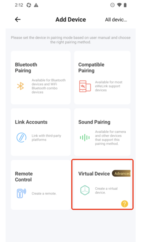 Virtual devices are available with eWeLink membership plans. Advanced users can create up to 5 devices, and Prime users up to 10.