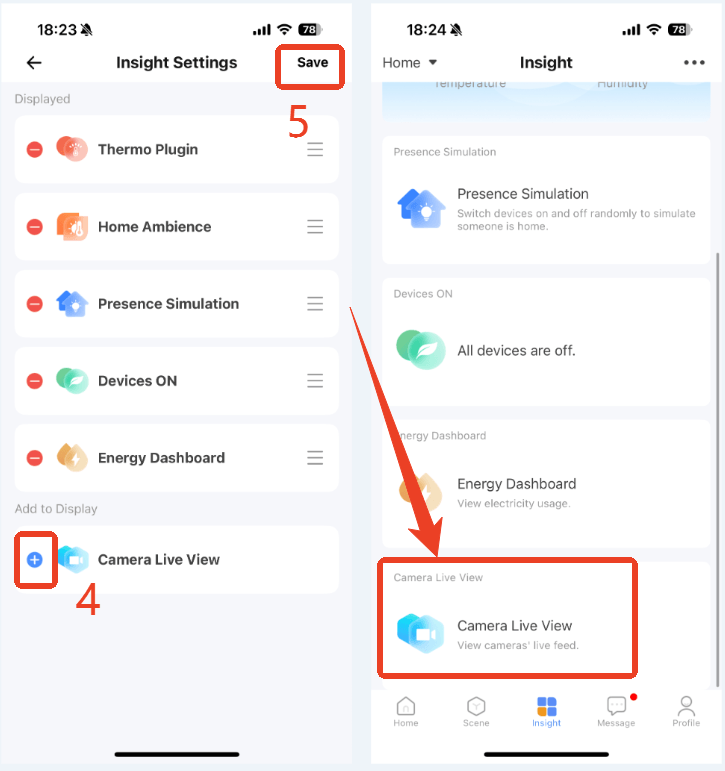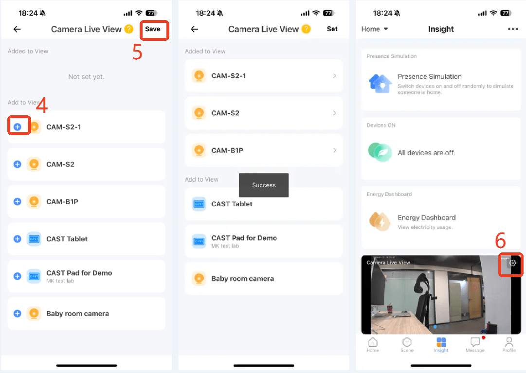 5. Tap “Save” to finish. Swipe to view all added camera live feeds on the Insight screen.